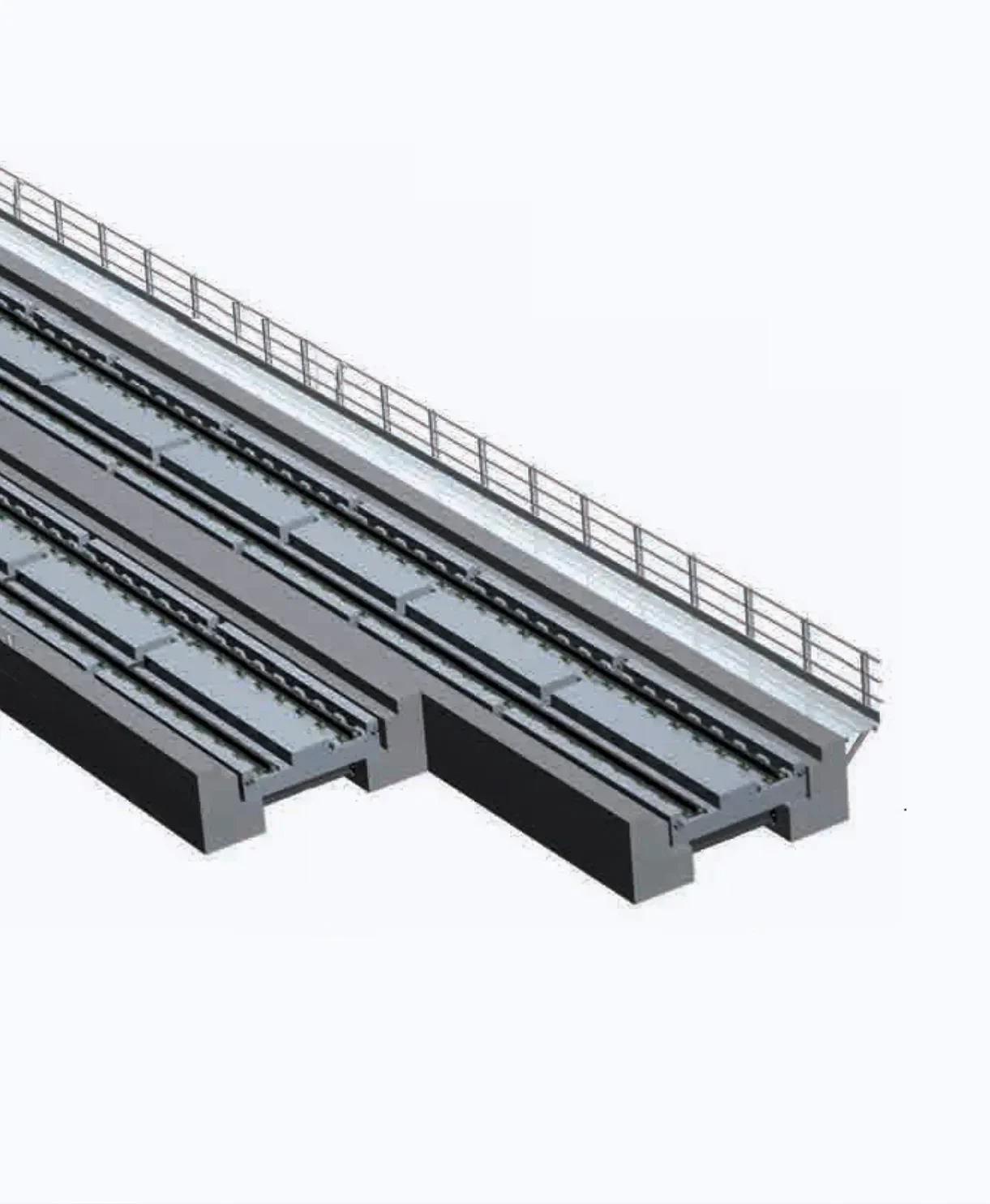 Ce type de pont ferroviaire, qui peut être utilisé pour des portées de 3,5 à 11,00 m, est constitué d’un ensemble de plates-formes en béton armé précontraint. Dans ce système, chaque plate-forme repose sur les culées existantes et sa hauteur varie en fonction de la portée de calcul de 45 cm à 85 cm.